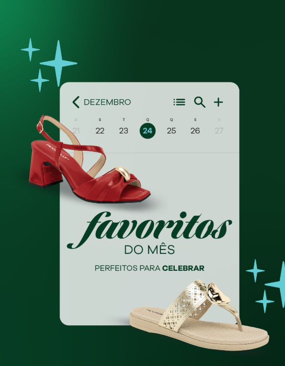 A temporada de Natal chega iluminando as vitrines com brilho, encanto e uma atmosfera que inspira celebração. Seja para  os encontros de fim de ano,  da confraternização ao almoço em família, passando pelo Réveillon na praia,  ou para presentear no amigo secreto e no próprio Natal, os calçados surgem como escolha infalível. Nesta época, ganham destaque em prata, dourado e no vibrante vermelho, cores clássicas e festivas. Para acompanhar esse momento especial, a PICCADILLY apresenta sua vitrine de Natal, marcada por adornos brilhantes e detalhes vazados que garantem leveza, respirabilidade e conforto em cada passo durante as comemorações. Opções de presentes de Natal 2025.